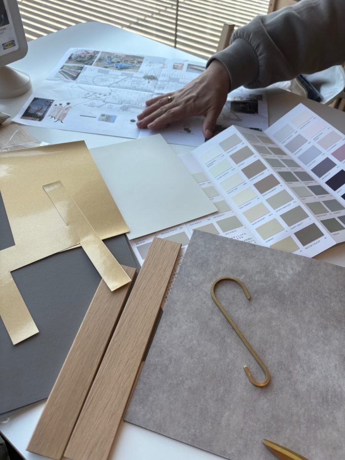 現地で撮影されたという壁面パネルの写真を参考にしながら、「視覚のトロンプルイユ(だまし絵)」を取り入れた装飾案も検討。空間に奥行きや遊び心を加えたいという想いがありました。