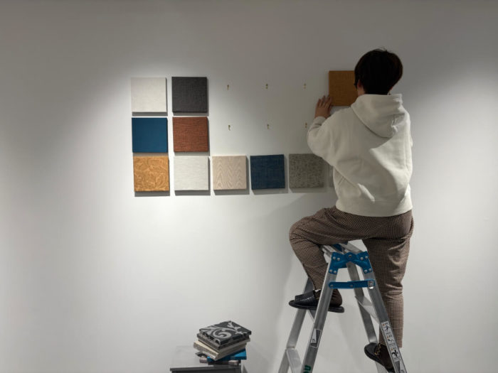 今回のプロジェクトでは、2Fショールームの施工と並行して進めていた、ファブリックパネル製作があります。今回はその様子を番外編としてお伝えします。