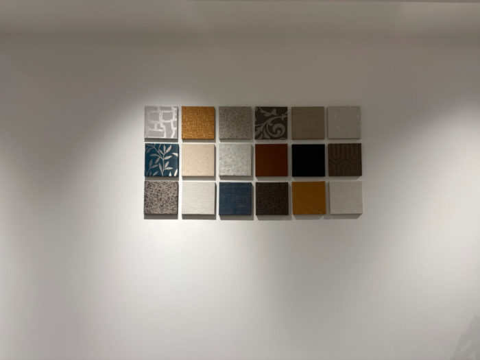 2Fショールームには、Garnier-Thiebautの生地を使った大きなファブリックパネルを制作しました。