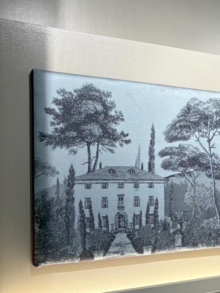選んだのは、フランスの邸宅と庭園が描かれたトワル・ド・ジュイのような風合いの生地。