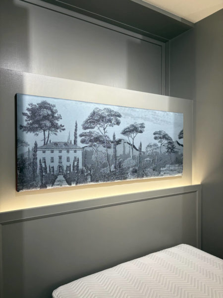 照明が当たったパネルは、生地の光沢が浮かび上がり、まるで一枚の絵のようです。